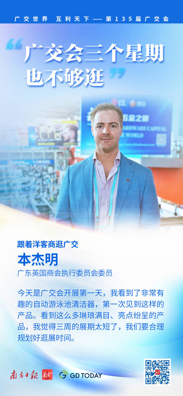 对第一次参加广交会的洋客商而言,展馆里的人山人海、先进的“黑科技”、创新的设计、丰富的粤菜美食、热情包容的广州文化……都令人印象深刻。