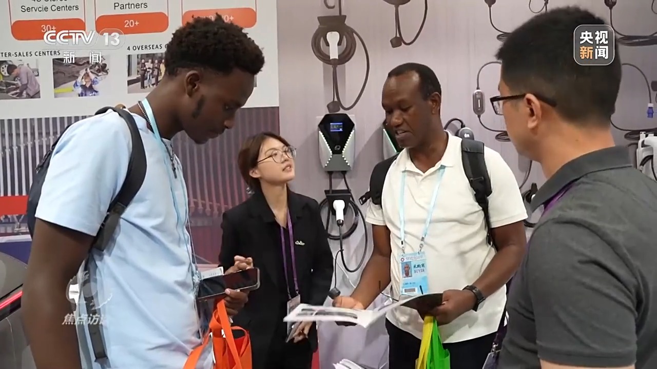 除了新能源汽车以外,记者在现场还发现,参展的锂电池、光伏、储能、充电桩等新能源相关企业也有很多。上海白象天鹅是生产电池的老牌国企,他们不仅针对欧美高端市场推出了“光伏+锂电池”的储能套餐,还特别针对非洲一些相对落后地区推出了“小而美”的解决方案。