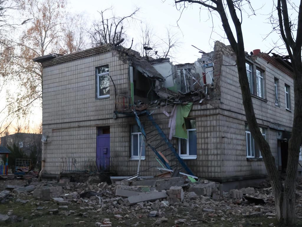 2023年11月25日,在乌克兰基辅市,一栋建筑屋顶被无人机碎片击中。新华社发(罗曼·佩图什科夫摄)