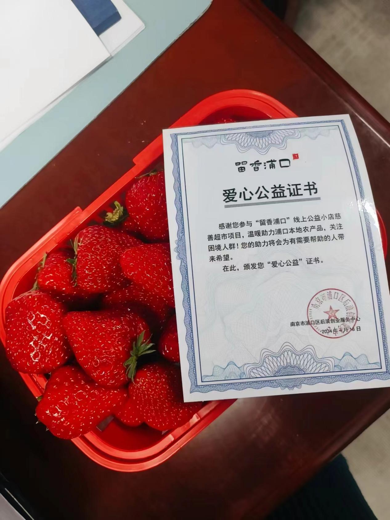 浦口区线上公益超市——“留香浦口”于4月17日正式上线,并推出了线上公益超市第一款公益商品——“周其海家庭农场”红颜草莓。在前期调研的基础上,后浪社工了解到周其海家庭农场荣获2022年第二届“南京最美家庭农场”称号,其农场种植的“红颜草莓”荣获了第十届江苏“紫金杯”优质草莓评比金奖,因此“留香浦口”选择它作为上架的第一个产品。