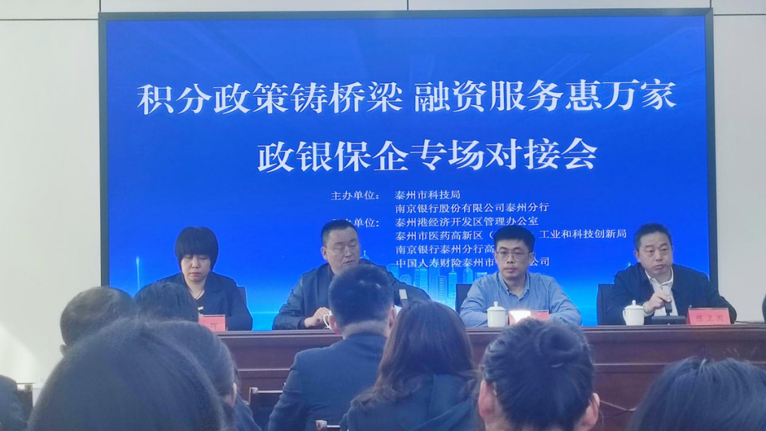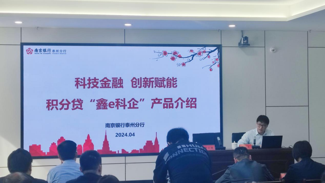 4月18日,南京银行泰州分行联合泰州市科技局走进泰州港经济开发区,启动首场“积分政策铸桥梁 融资服务惠万家”政银企专场对接活动,将创新积分贷政策和政策应用产品“鑫e科企”带到园区,助力园区企业创新发展。