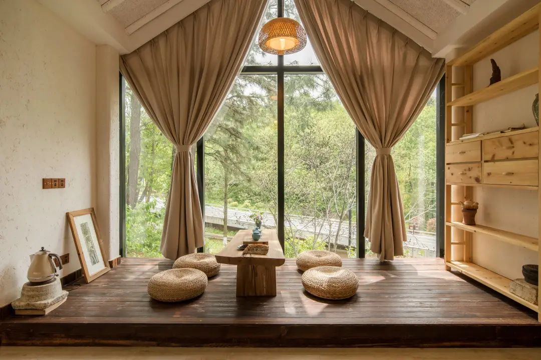 空气中满满的负氧离子,气候温和湿润,虫鸣鸟叫唤醒生动的气息,令人想把所有的嘈杂都屏蔽掉,睁开眼就是远山在前,鸟旋于山涧,山间的风拥着清凉袭来。