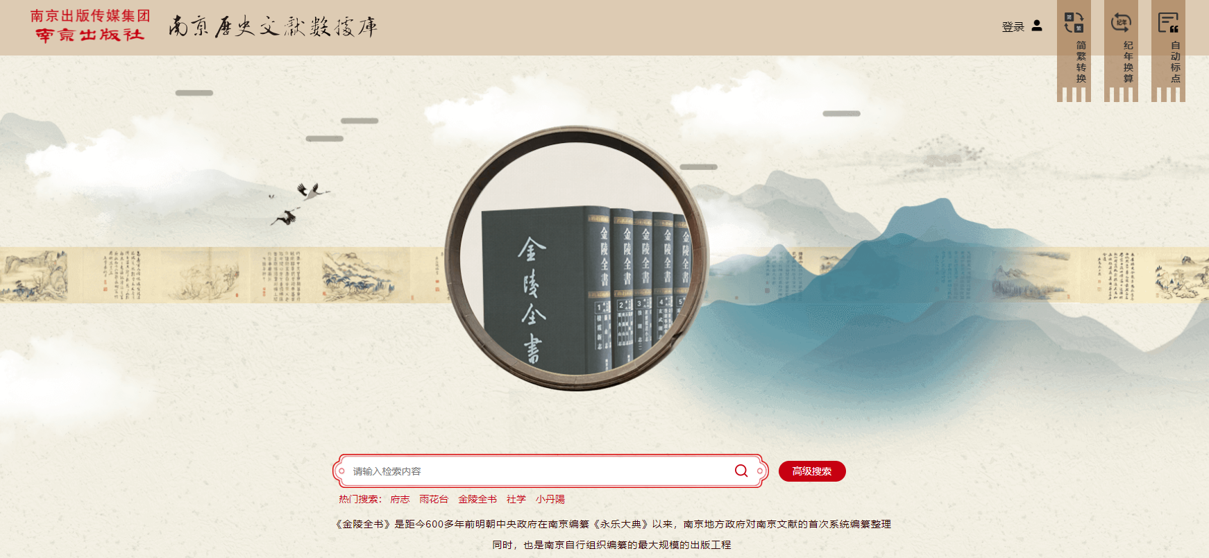 交汇点讯 六朝古都南京历史文脉悠长,文化底蕴深厚。从2009年开始,南京启动了《金陵全书》的整理出版工作,这是南京自行组织编纂的最大规模的出版工程,更是南京历史文献的集大成之作。近日,《金陵全书》的数字共享平台“南京历史文献数据库”正式对公众免费开放,读者可以在网上快捷地查询、使用《金陵全书》收录的历代文献。