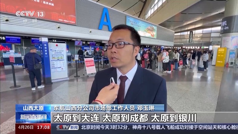 东航山西分公司市场部工作人员 邓玉琳:从目前航班的运力情况来看,太原到大连,太原到成都,太原到银川,太原到重庆、宁波这些城市,整个五一期间的预订情况是比较好的。主要的到达目的地涉及国内30余个大中小城市,还有两个国际和地区航点。目前整体的运力投入,能够极大地满足和方便广大旅客的“五一”出行需求。