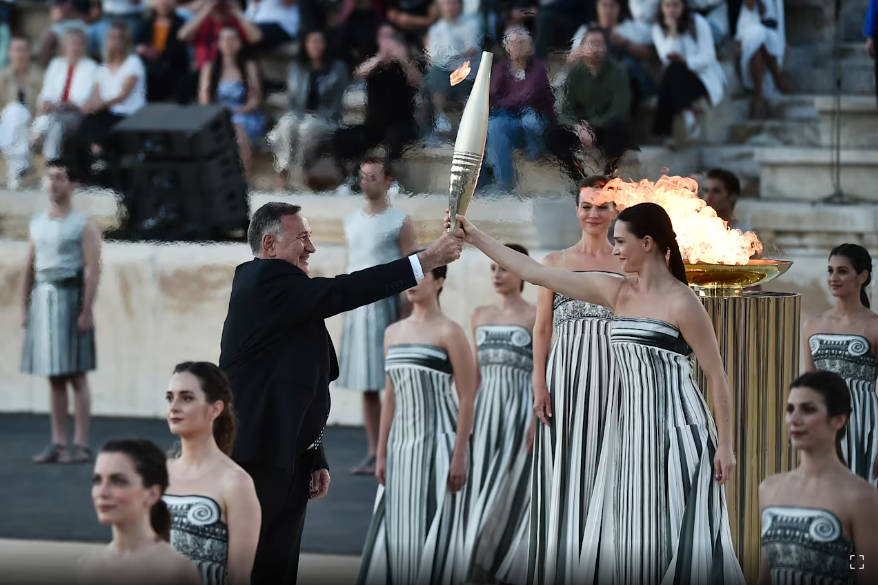 26日傍晚,巴黎奥运会火种在希腊首都雅典帕纳辛奈科体育场,由希腊奥委会正式交给巴黎奥组委,巴黎奥组委主席托尼·埃斯坦盖从希腊奥委会主席卡普拉洛斯手中接过奥运火炬。