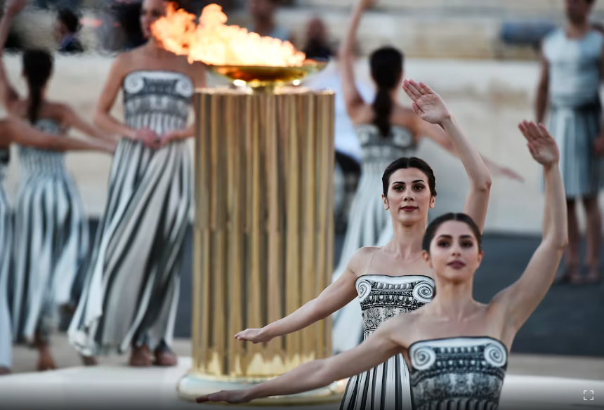 巴黎奥运会火种4月16日在希腊伯罗奔尼撒半岛的古奥林匹亚点燃,在希腊境内经过11天传递后来到雅典。