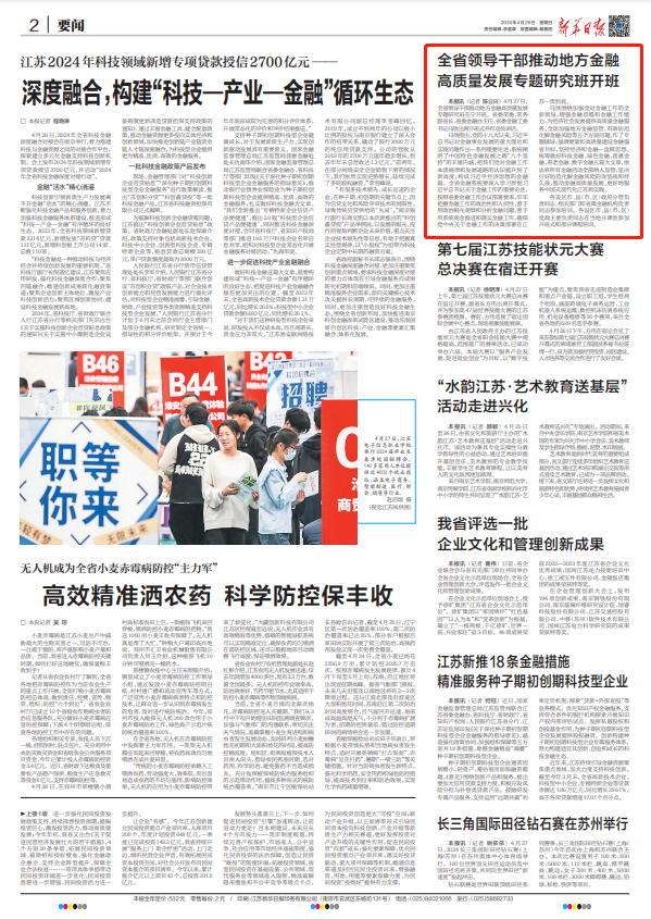 马欣围绕加强党对金融工作的全面领导、增强金融思维和金融工作能力、为经济社会发展提供高质量金融服务、全面加强地方金融监管、有效防范化解金融风险等五个方面问题,作了专题辅导,强调要紧扣高质量建设金融强省目标,坚持经济和金融一盘棋思想,统筹做好科技金融、绿色金融、普惠金融、养老金融、数字金融五篇大文章,依法将所有金融活动全部纳入监管,坚决打好防范化解金融风险的攻坚战和持久战,推动金融高质量发展,更好地服务中国式现代化江苏新实践。