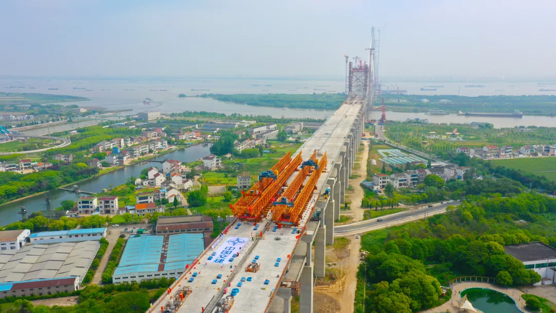 常泰长江大桥南北公路接线与跨江大桥成功“牵手”