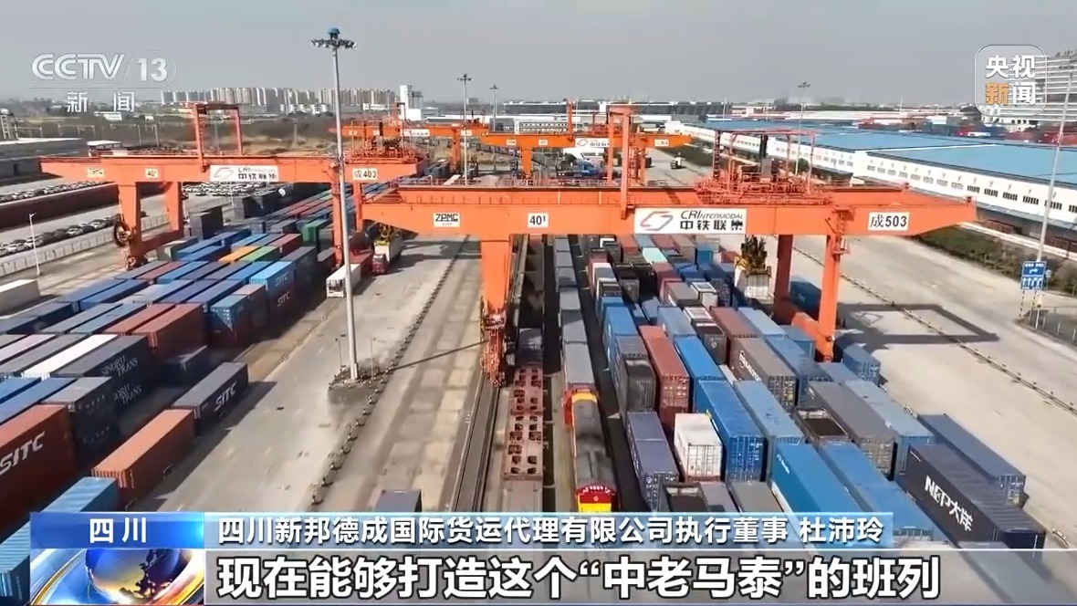 四川新邦德成国际货运代理有限公司执行董事 杜沛玲:从成都到钦州,然后从钦州出海到马来西亚,现在能够搭乘中老马泰的班列,能够节约一周左右的时间,以前差不多需要15天。