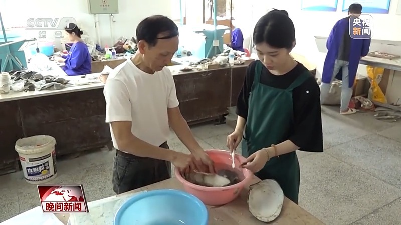 在北海贝雕博物馆的工作坊,七十岁的林师傅带着几位二十来岁的徒弟,一步步教授制作要点。他希望这份手艺能够一代代传承下去。