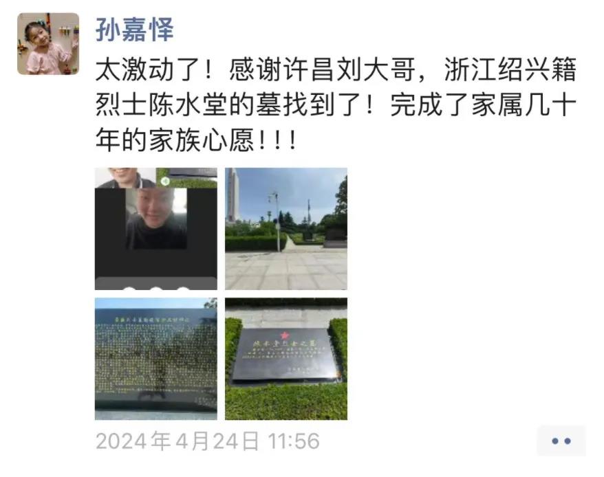 随后,孙嘉怿联系了许昌当地的志愿者,在烈士陵园内,他们找到了陈水堂烈士的名字。从接到求助到完成,前后不到24小时。然而,在孙嘉怿经历的案例中,这样的其实是极少数。