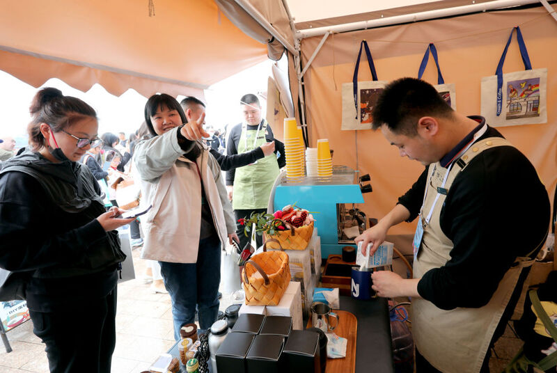 2024年5月1日,2024上海国际咖啡文化节在上海徐汇滨江拉开帷幕,这是咖啡店的工作人员(右)在活动现场制作咖啡。新华社记者 方喆 摄