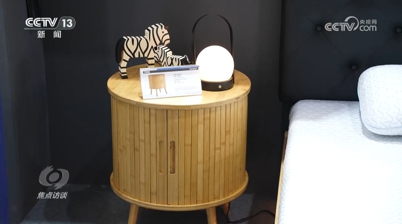 福建某家具公司董事长吕仲琦现场展示了一款床头柜,这款床头柜增加了无线充电功能,增加了新的功能,让产品焕发了新的生命。作为一家生产家具的传统企业,如何让老产品焕发新生从而打开国内外市场,是他们思考最多的问题。一款能无线充电的竹制床头柜就是他们的最新展品之一。此外,还有竹制的大衣柜、床、餐桌椅和电视柜等。