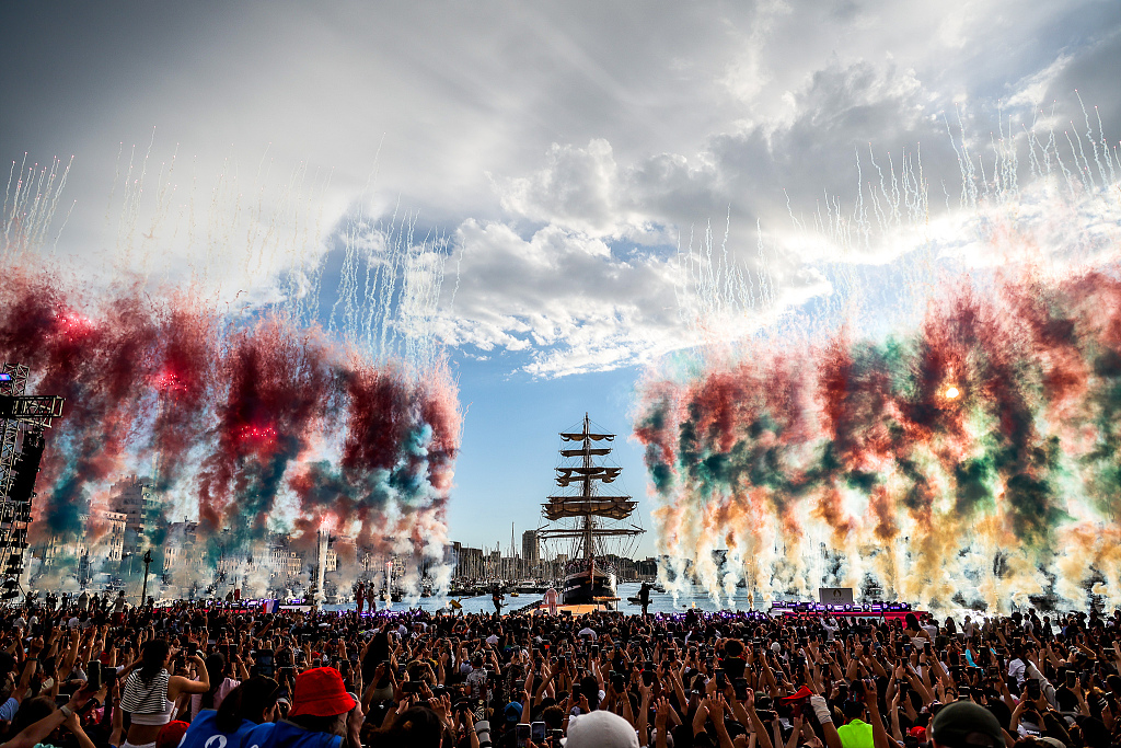 法国当地时间5月8日晚,巴黎奥运会火种抵达法国南部港口城市马赛,据法国媒体报道称有多达15万民众聚集在马赛老港迎接,场面十分热烈。