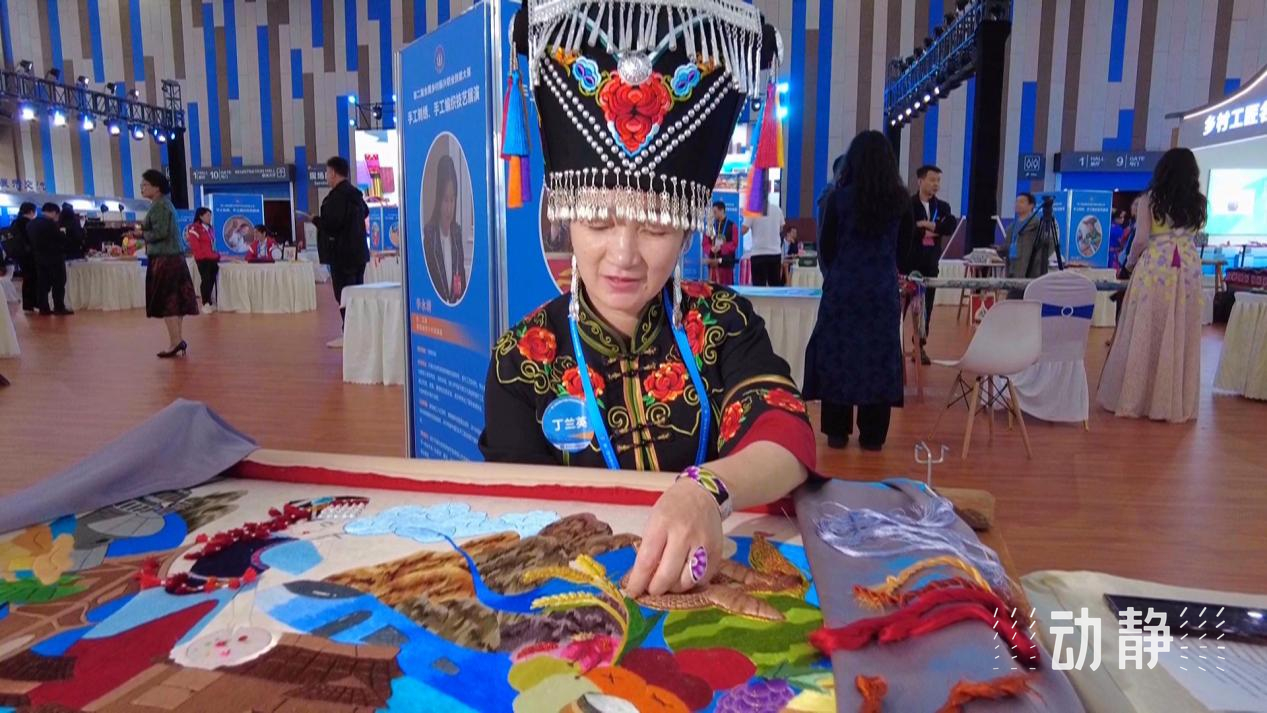 同样作为国家级非遗传承人的丁兰英,来自云南省楚雄市,她挖掘并传承了目前机器无法替代的打籽绣、缠针绣、螺旋绣三种针法,带动当地780多人从事刺绣品生产,将指尖技艺转化为指尖经济。