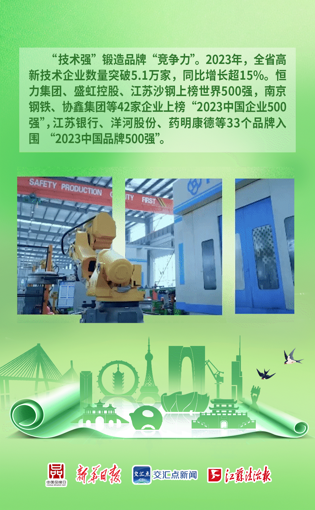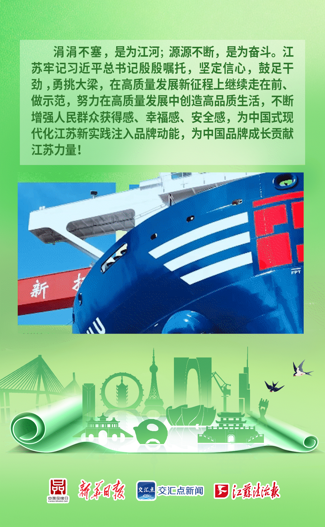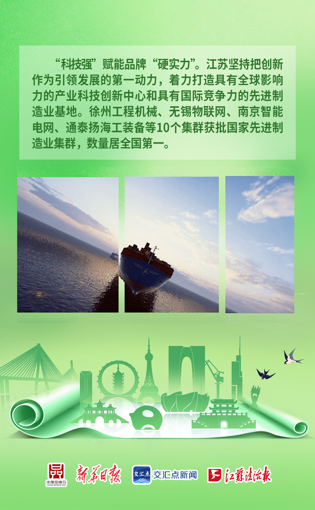 江苏,是唯一同时拥有大江、大河、大湖、大海的神奇土地,江河湖海孕育发展热土,滋养一方百姓。近年来,江苏认真贯彻落实党中央、国务院关于品牌发展的重大决策部署,积极推进“江苏精品”品牌战略,形成了以国家品牌为龙头、省级品牌为主体、市级品牌为支撑的品牌体系。“苏字号”品牌如同一朵朵芬芳四溢的茉莉花,绽放在江苏大地上,让世界感受创新、协调、绿色、开放、共享的江苏,在澎湃的经济巨浪里,畅行江海,走向未来。