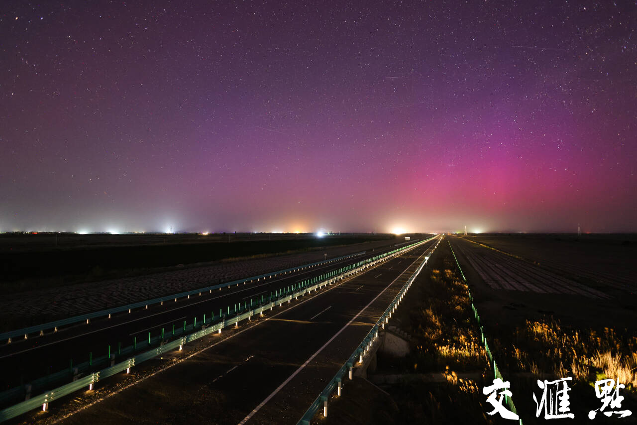 交汇点讯 地磁暴带着极光来了!国家空间科学中心发布消息,受太阳耀斑影响,北京时间5月11日地磁产生强扰动,达到大地磁暴水平。5月12日凌晨,我国新疆、内蒙古、甘肃等地因地磁暴引发极光。交汇点记者在新疆乌鲁木齐市五家渠老龙河用相机记录极光的绚丽一刻。