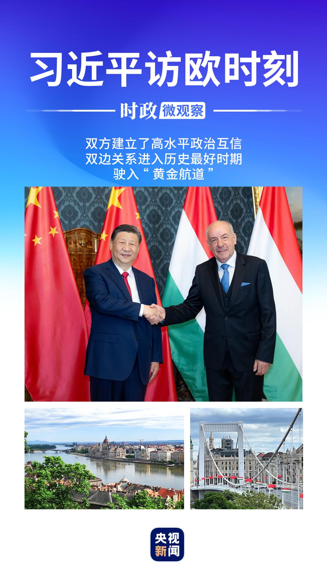 “双方建立了高水平政治互信,双边关系进入历史最好时期,驶入‘黄金航道’。”在《匈牙利民族报》发表的署名文章中,习近平主席这样写道。