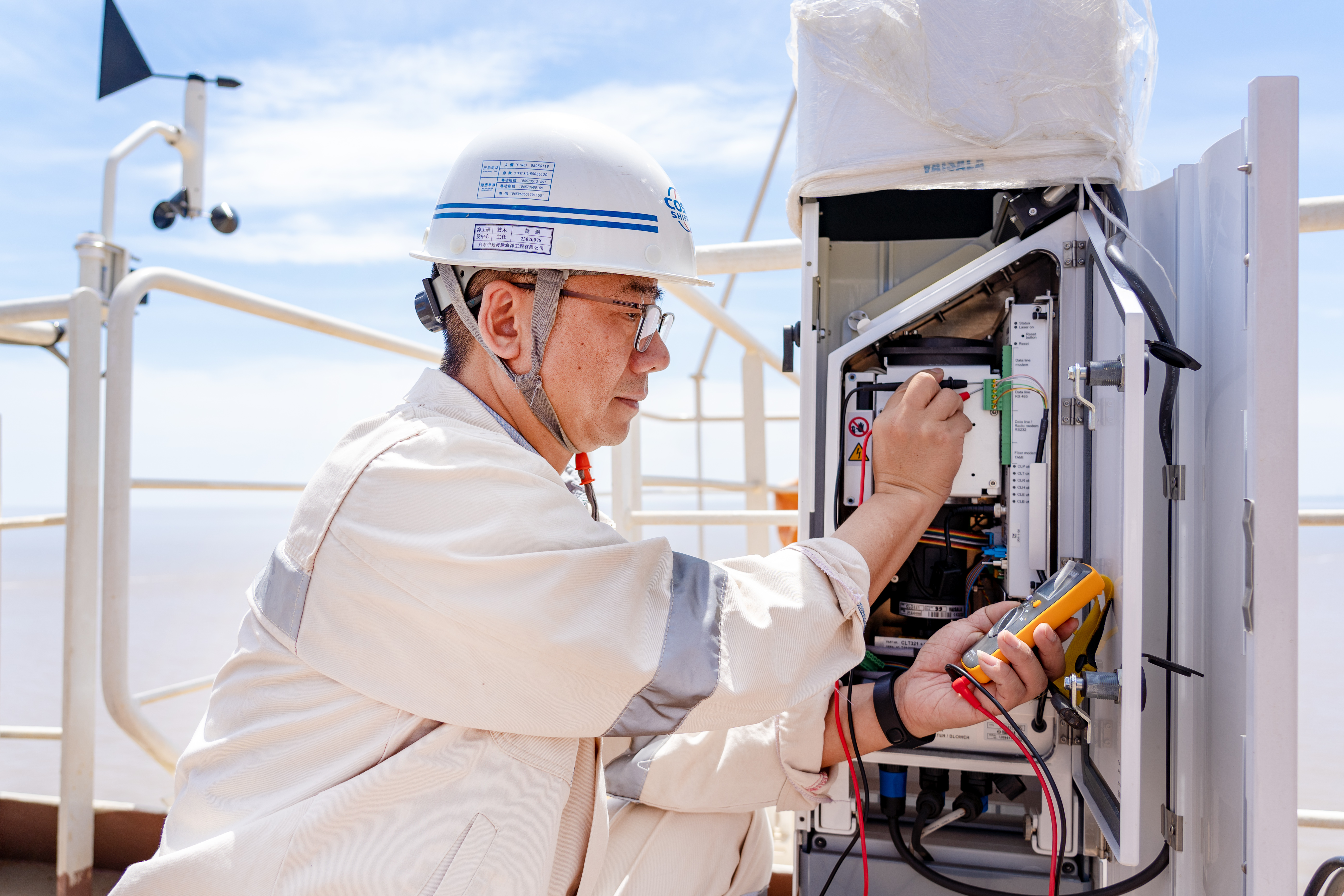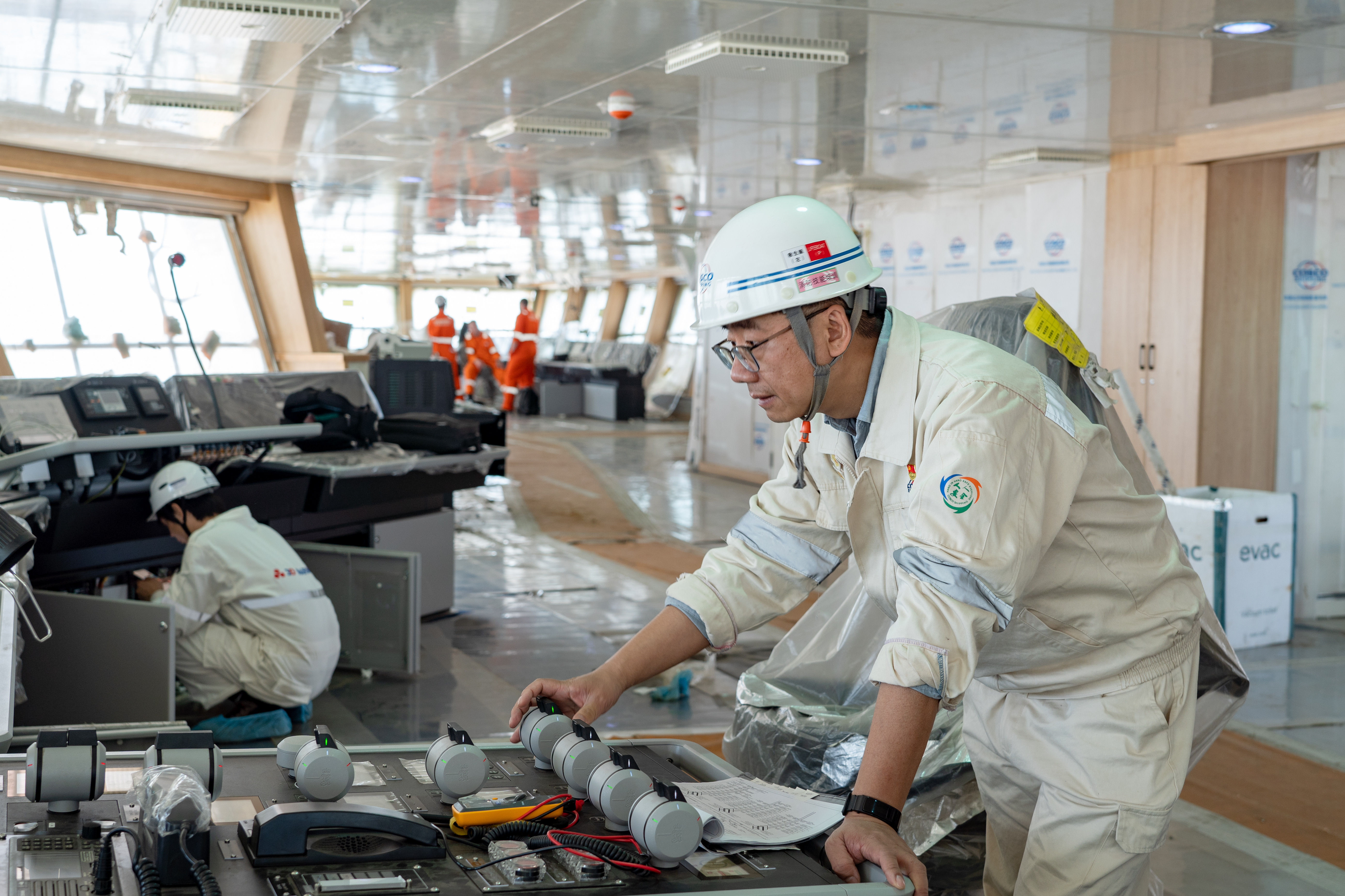 一手拿着图纸,一手握着电表,启东中远海运海洋工程有限公司海工与新能源研发中心电气室副主任黄剑说话不急不缓,像一名严谨细致的教师。