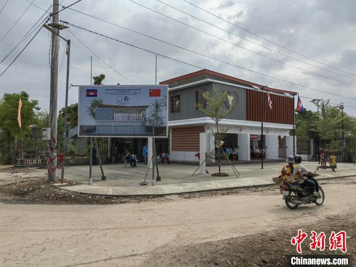 当地时间5月12日,新落成的中柬友好扶贫示范村村民中心。中新社记者 杨强 摄