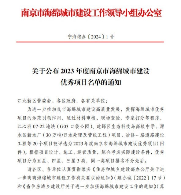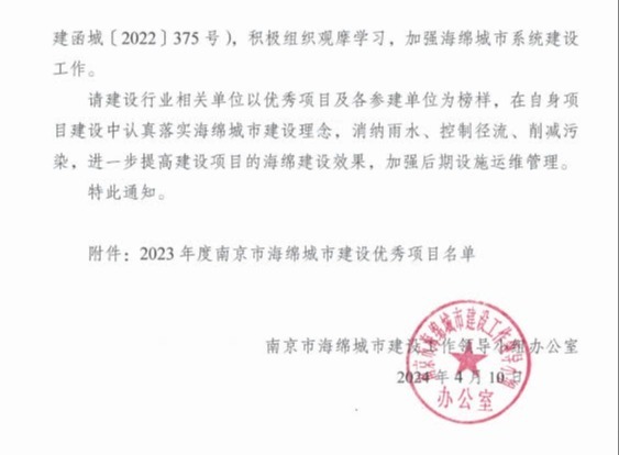 近日,双联路、杜英路、青柳路、紫菀路、晓年丰路等五条道路市政建设工程获评2023 年度南京市海绵城市建设三星级优秀项目。