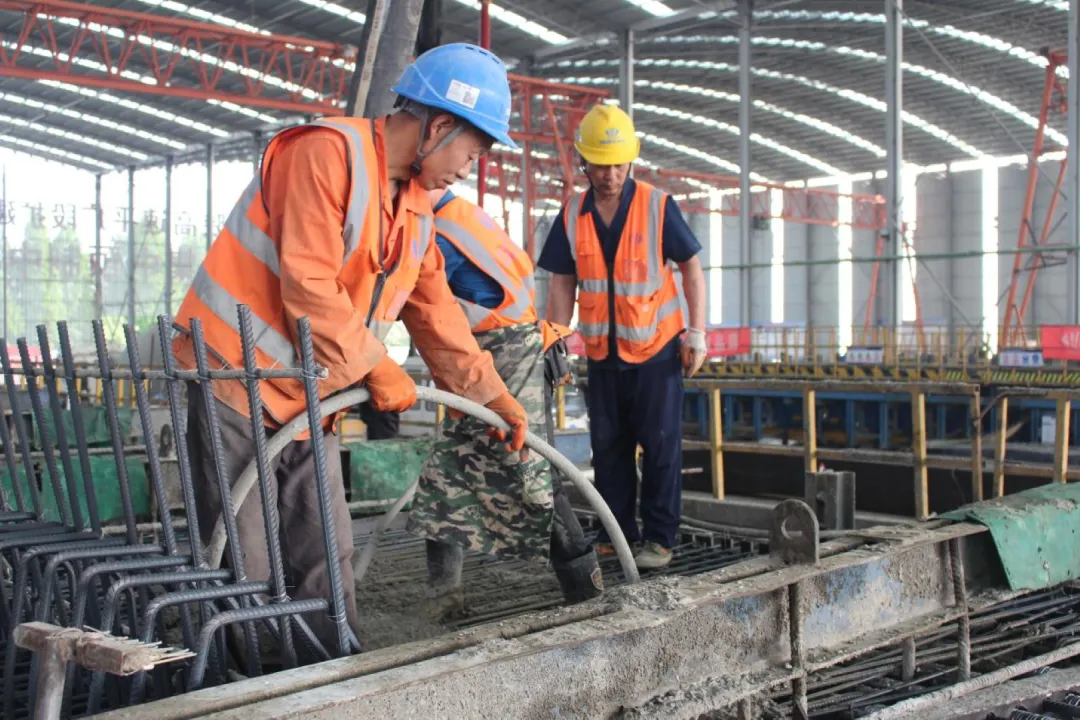 箱梁预制是项目建设中的关键环节。自开工以来,项目建设团队合理规划场区布置,按照“标准化、规范化、精细化、绿色化、信息化”管理要求,全面做好过程管控和各工序衔接。在推进箱梁生产过程中,严把试验检测关、原材料进场关、箱梁浇筑关,夏季高温时段合理安排浇筑时间,冬季施工期间严格落实保温措施,有效确保工程进度、安全质量有序可控,实现了对预制梁场全方位精细管理,优质高效完成了箱梁预制施工任务。