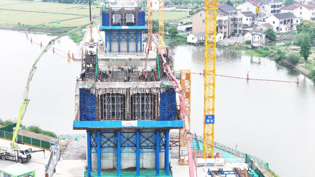 近日,由中铁隧道局承建的通苏嘉甬高铁吴江段苏南特大桥跨牛长泾连续梁主墩571#墩“0号块”顺利浇筑完成,项目进入桥梁连续梁施工阶段。