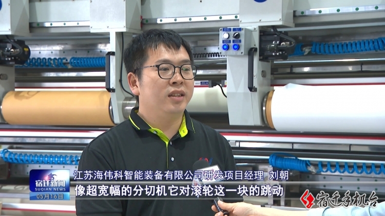 江苏海伟科智能装备有限公司研发项目经理刘朝说:“像超宽幅的分切机它对滚轮的跳动、加工精度会比较高。海伟科团队经过反复的验证,修改滚轮的一些材质,然后加工工艺,经历了90天终于完成了该项技术的突破,达到了满足客户的使用。我们的设备具有分切速度快、精度高,然后张力控制稳定,分切效率的话领先于同行20%。”