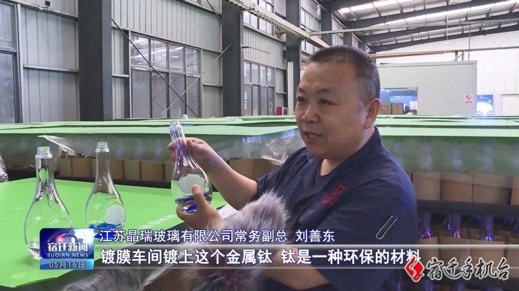 在位于宿迁市泗阳的江苏晶瑞玻璃有限公司制瓶车间,先进的机械手正在从上料、吹瓶再到检测,全过程均实现自动化。公司自主研发的金属钛镀膜技术,已经运用到瓶身,不仅美观、环保,还更防伪。