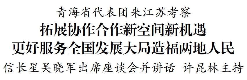 交汇点讯 5月16日至17日,青海省代表团来江苏考察。江苏省委书记信长星、青海省省长吴晓军出席两省对口支援协作工作座谈会并讲话。江苏省省长许昆林主持座谈会并陪同考察。