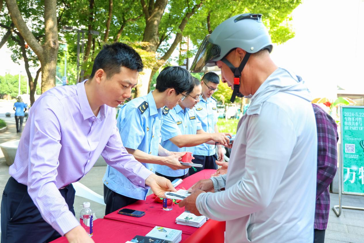 群策群力,共同守护生物多样性之美。淳溪街道志愿者、网格员和区局生态环境执法人员齐上阵、同出力,彰显责任与担当;居民、消防员、环卫工人,老人、孩子、青年,不同身份和年龄层面的人们聚集在一起,绘成了一幅“生物多样性 你我共参与”美好图景。活动现场发放宣传资料600多份,环保小礼品300多件,环保购物袋300多个。