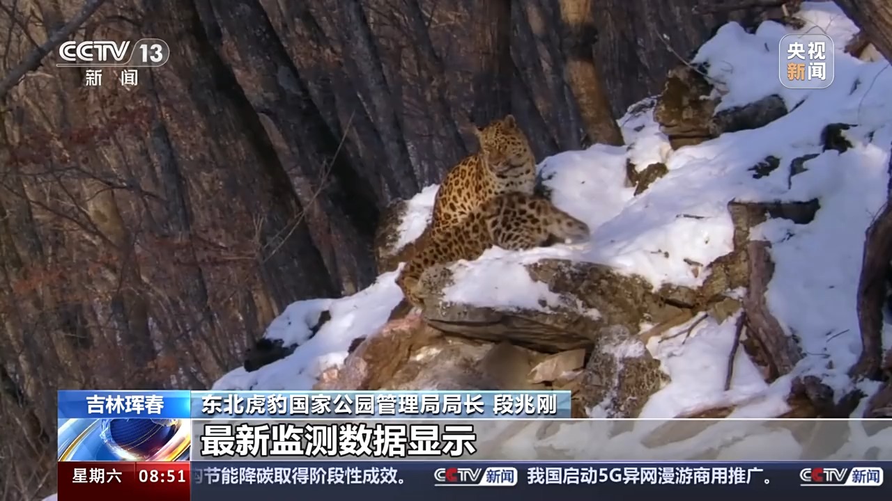 东北虎豹国家公园管理局局长 段兆刚:我们监测发现,仅2023年一年的时间,公园内新增野生东北虎幼崽20只,野生东北豹幼崽15只。对比近10年的数据发现,野生东北虎豹幼崽的成活率,从2015年的33%增长到现在的接近50%。