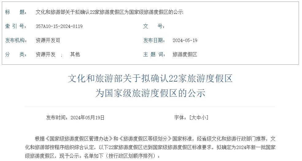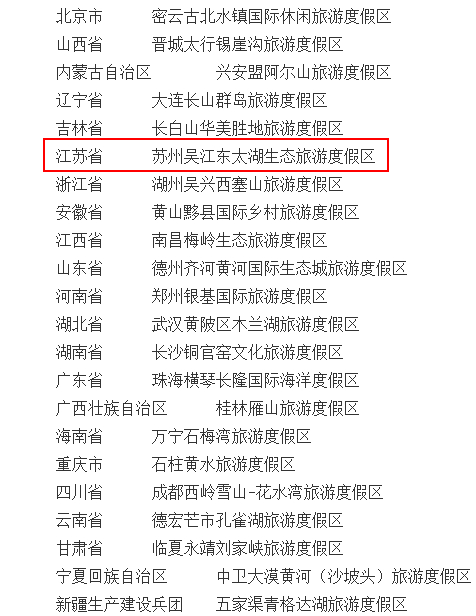 交汇点讯 5月19日,文化和旅游部网站发布关于拟确认22家旅游度假区为国家级旅游度假区的公示,苏州吴江东太湖生态旅游度假区拟确定为2024年新一批国家级旅游度假区,这也是本次江苏唯一入选的旅游度假区。