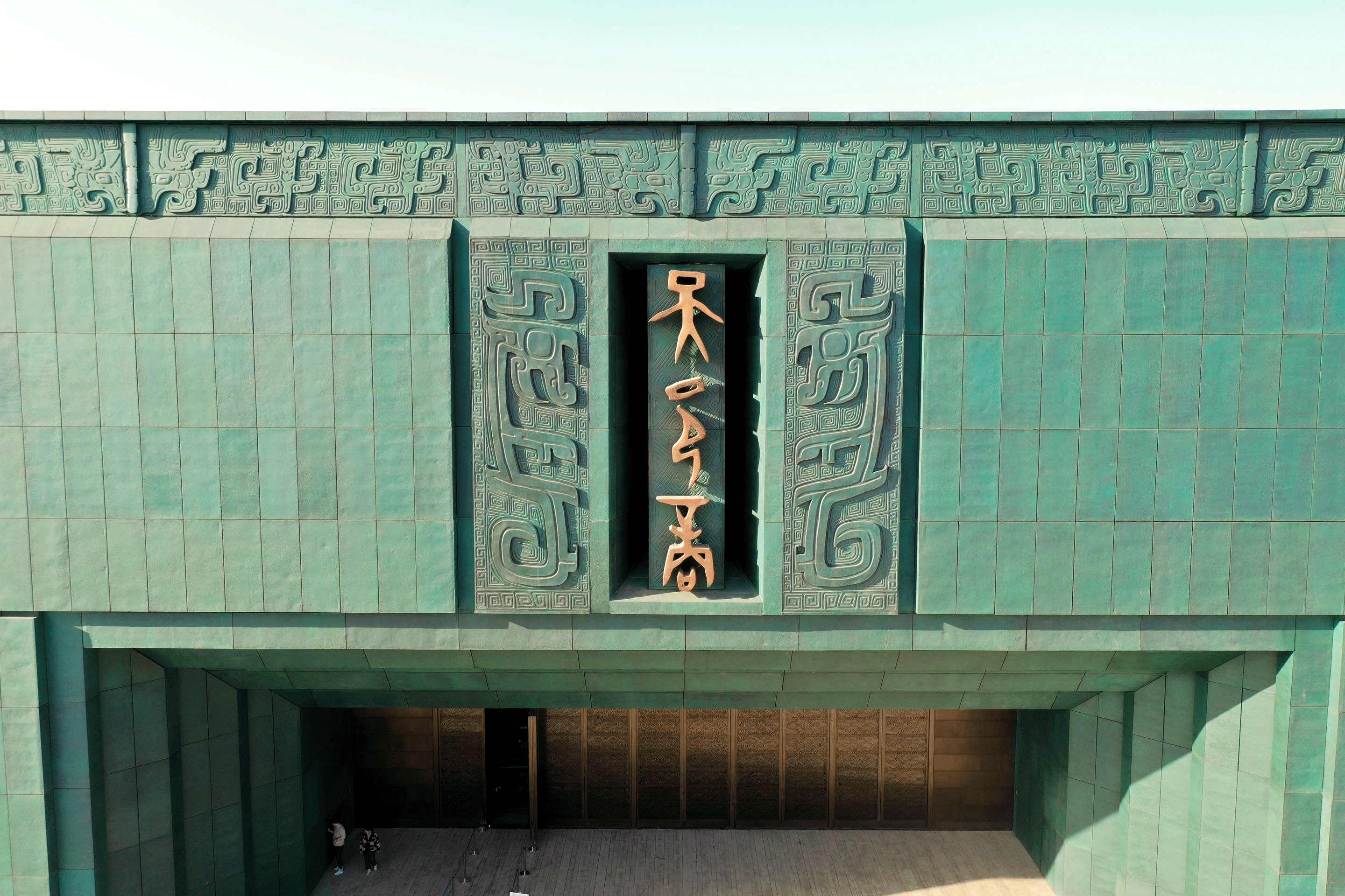 两个多月前,安阳殷墟博物馆新馆正式开馆。遥遥望去,新馆造型颇具巧思——鼎形的建筑矗立水畔,古铜色的大门,青铜饰面为幕墙,“大邑商”仿佛从3000年前款款走来。