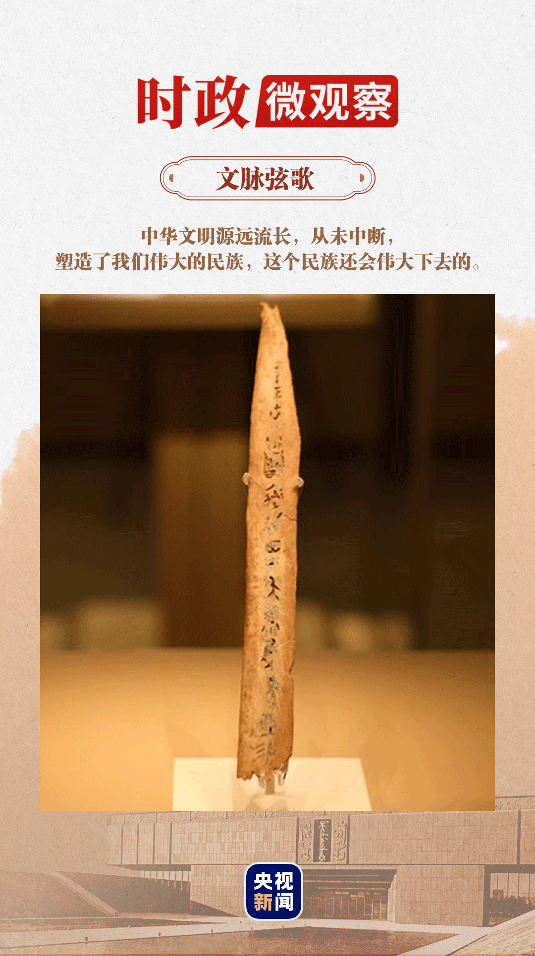正如习近平总书记在殷墟考察时所说:“中华文明源远流长,从未中断,塑造了我们伟大的民族,这个民族还会伟大下去的。”