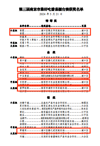 5月20日,浦口区在第三届南京市最好吃番茄擂台赛中再获佳绩,共获得18个奖项,其中2个特等奖。