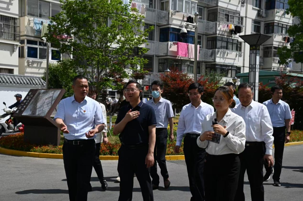 考察组一行来到东升社区合心花苑小区,实地考察老旧小区改造成果。一路走一路看,一栋栋居民楼整齐排列,一条条硬化道路干净整洁,一幅幅彩绘文化墙精美亮丽,休闲凉亭、健身场所、长者幸福食堂等一应俱全。社区工作人员为考察组详细介绍了小区在基础设施、功能配套、加装电梯、后期维护等方面实现的蝶变,陈宏听取相关介绍后,表示此次考察收获颇丰,肯定了合心花苑小区整体规划和提升改造等工作,感觉到居住在此小区的居民幸福感特别强。