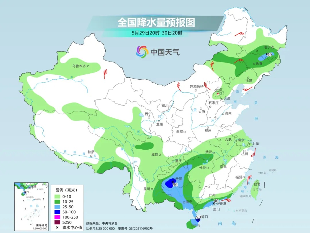 5月31日至6月初,切变线的位置还将基本维持在华南、江南南部,这一带仍将多中到大雨。
