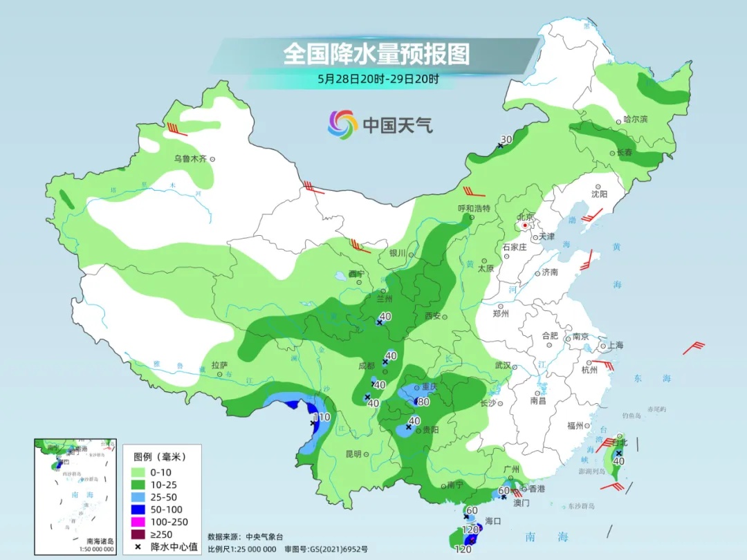其中,今后三天,西南地区东部至华南一带有较强降水。今天夜间到明天,西南地区东部和北部、云南西北部、华南南部沿海和海南岛、台湾岛中东部等地部分地区有中到大雨,西藏东南部、重庆西南部、贵州西北部、云南西北部、广东西南部沿海、海南中东部等地部分地区有暴雨或大暴雨。