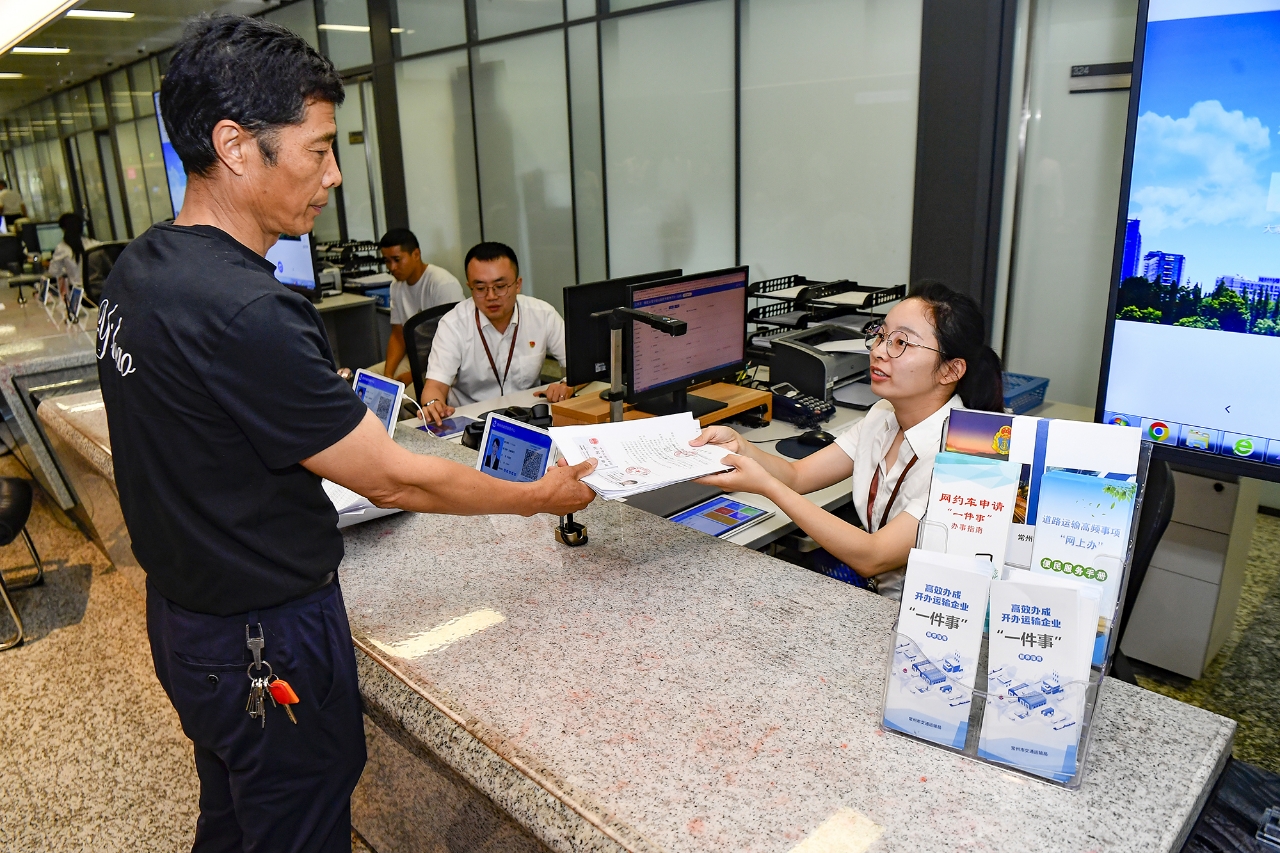 解锁多元化服务场景。线下提供同标准“窗口登记”功能,支持设区市“一件事”综合专窗实行“一窗受理、集成服务”,线上新增“苏服办”“江苏交通云”等平台,推出“苏(速)交速办”政务服务便民点帮办代办,在机动车检测站等货车司机党建服务点设置便民服务窗口,方便货车司机就近办理。丰富的线下线上办理场景,让企业和群众根据自身情况合理选择。