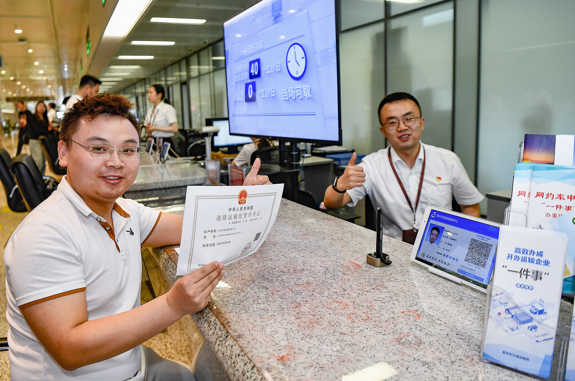 “以前办理需要携带道路货物运输经营申请表、道路运输达标车型核查记录表、已购或拟购车辆信息表等15份材料到场。现在只需出示身份证和电子证照,真是太方便了。”现场另外一名办证人员常州五佳运输有限公司经办人陆军在谈及感受时,连声称赞。