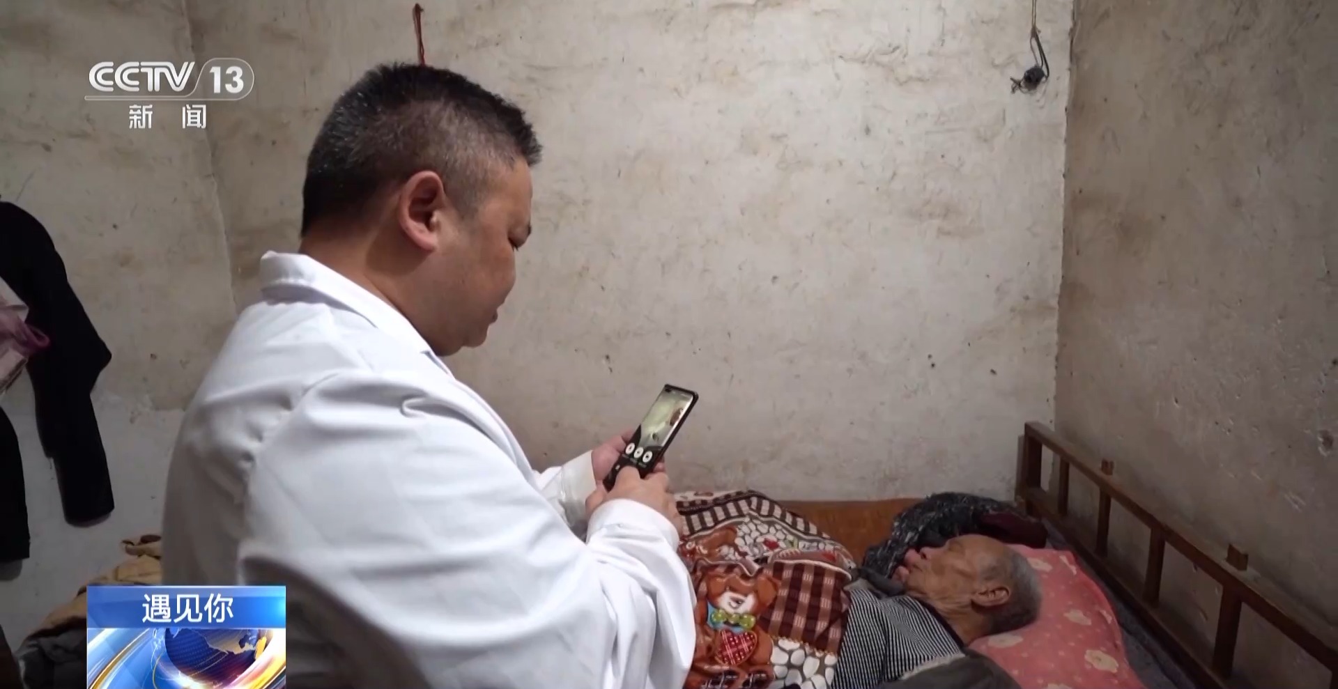 为了方便在外务工的孩子及时了解家中父亲的病情,谭鉴军给谭兴德的儿子打去了视频,将老人的病情以及治疗方法都一一进行了说明。