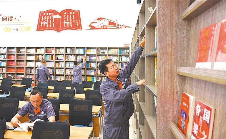5月28日,中车长客职工书屋,周晶辉国家技能大师工作室成员利用休息时间忙“充电”。