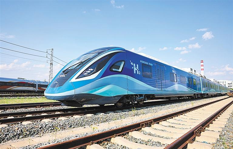 5月28日,中车长客研制的全国首列氢能源市域列车。该车已于近期成功完成达速试跑,标志着氢能在轨道交通领域的应用取得历史性突破。