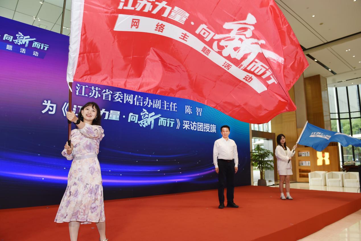 江苏省委网信办副主任陈智为“江苏力量·向‘新’而行”采访团授旗。采访团将在未来的采访中探寻江苏加快推动高质量发展的举措,挖掘因地制宜发展新质生产力的江苏故事。