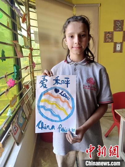 图为巴基斯坦的孩子在展示自己的绘画作品。 (受访者供图)