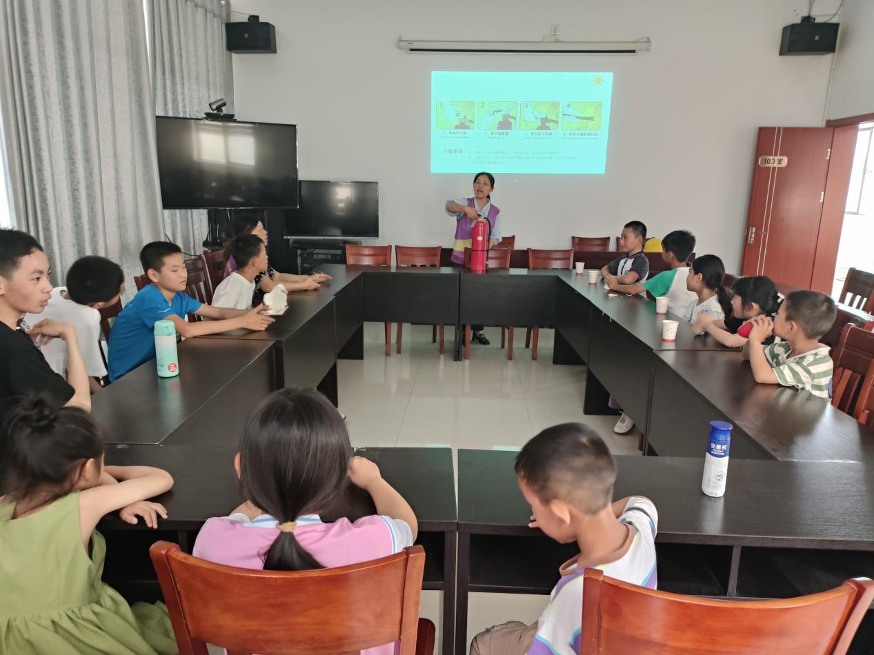 不止于此,为了让孩子们有更直观的体验,志愿者老师拿出灭火器,现场进行示范,耐心地讲解着灭火器的使用步骤和注意事项,然后手把手地教孩子们如何操作。孩子们跃跃欲试,纷纷上前尝试,在实践中掌握了这一重要的安全技能。