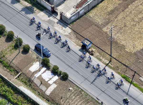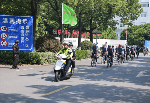 整齐有序的自行车队形成了一道亮丽的风景线,也吸引了沿途市民的广泛关注,不少市民驻足观望,有的市民还为骑手们呐喊助威。在整个行进途中,为确保骑行队员的安全和活动的顺利进行,国家能源集团泰州发电公司派出两台电动车为骑行队伍开道,呼吁过往车辆、行人遵守交通规则,自觉杜绝和抵制不文明的交通行为,用实际行动践行绿色出行理念。