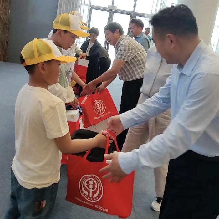 参观结束后,射阳县民政局、射阳县慈善会领导为孩子们送上心愿物品,帮助孩子们实现他们的小小心愿。活动前期,工作人员收集了孩子的“微心愿”,“我想要书包、铅笔和一些文具。”“我想要足球、跳绳,可以和好朋友们一起运动。”这些微心愿,虽然微小,却充满了对美好生活的渴望和期待。一个书包、一套文具、一个足球,在礼物交接的同时,也为那些怀揣着纯真梦想的孩子们点亮他们心中的微光。收到礼物后,孩子们聚在一起,互相“炫耀”着,脸上洋溢着幸福的笑容。
