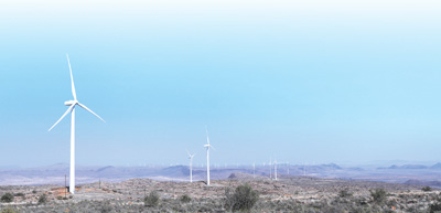 位于南非北开普省德阿镇的中国国家能源集团龙源电力南非公司运营的德阿风电项目风机。新华社记者 董江辉摄
